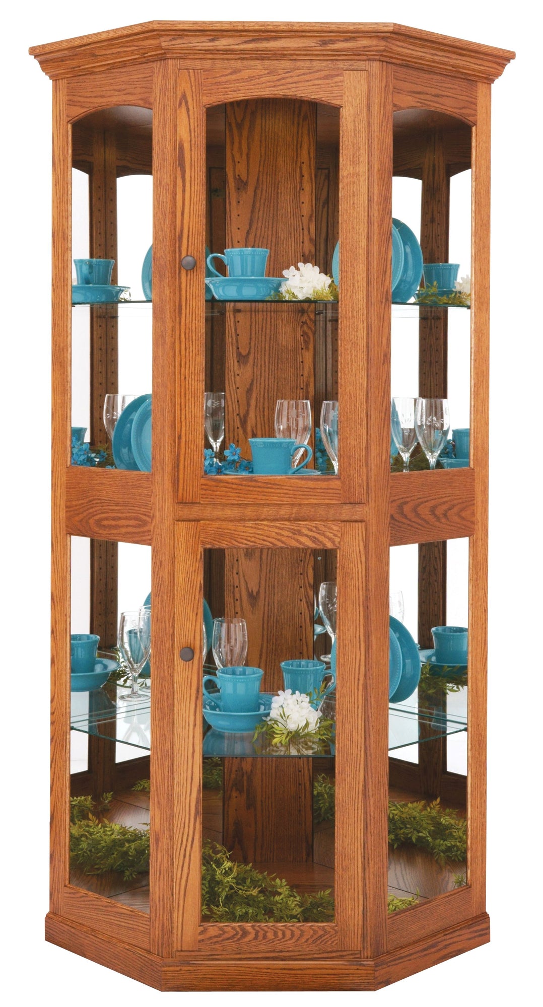 Amish Hardwood Large Corner Curio Display Cabinet