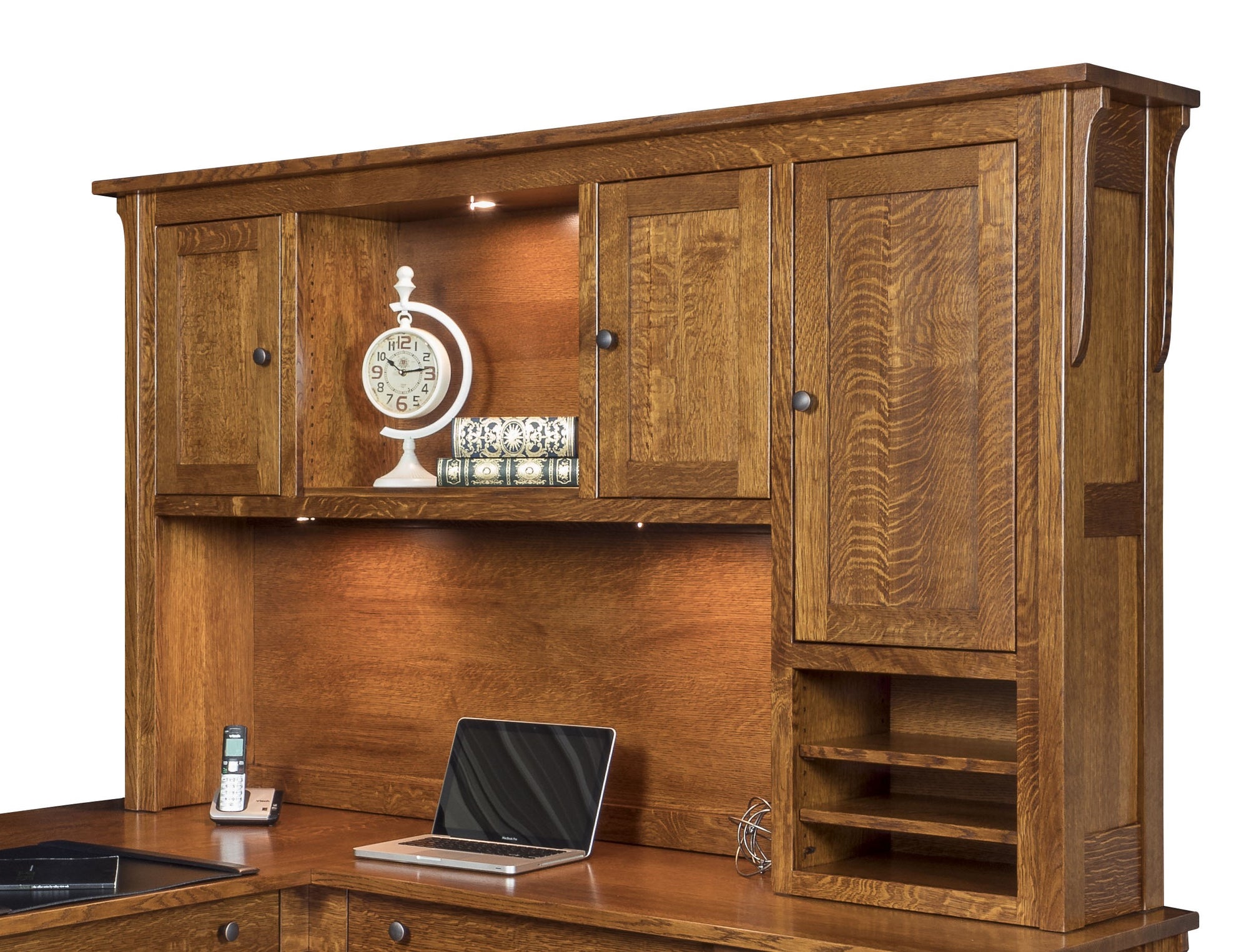 Boston Amish Hardwood Desk Hutch Topper With Puck Lights