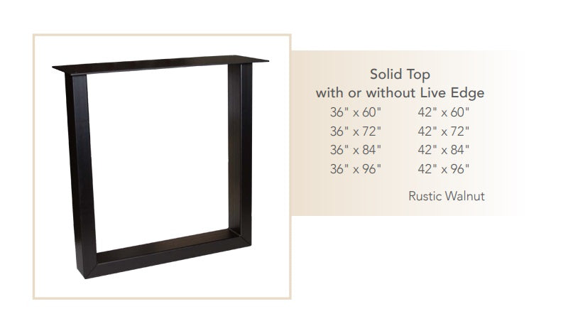 U Series - Rustic Walnut Live Edge Dining Table with Steel Base / Quick-Ship