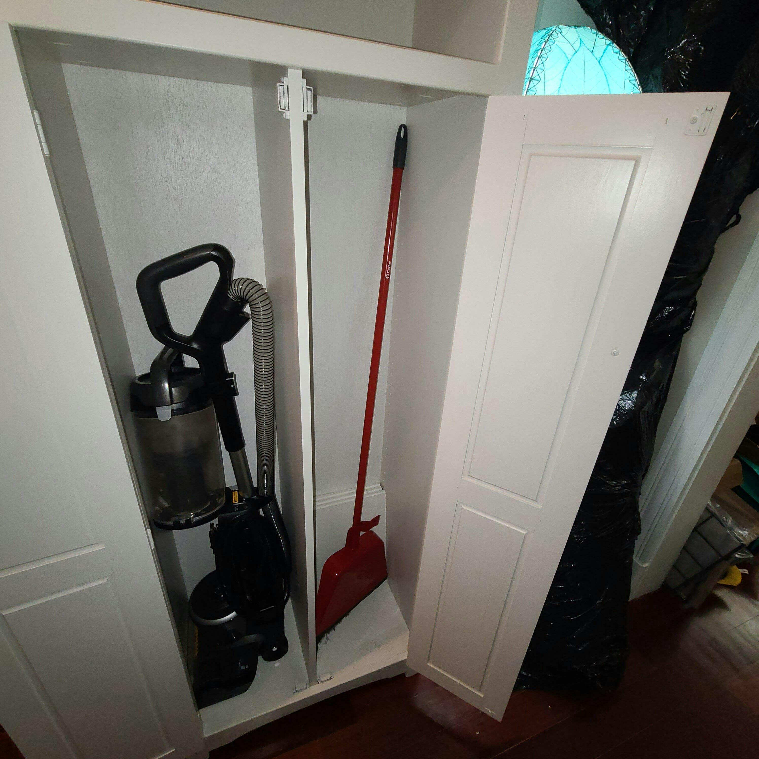 Are you interested in changing something about this broom closet to better suit the needs of your home? Ask us about our customization options. From changing dimensions to adding shelves, we can help you create the perfect piece for your home.