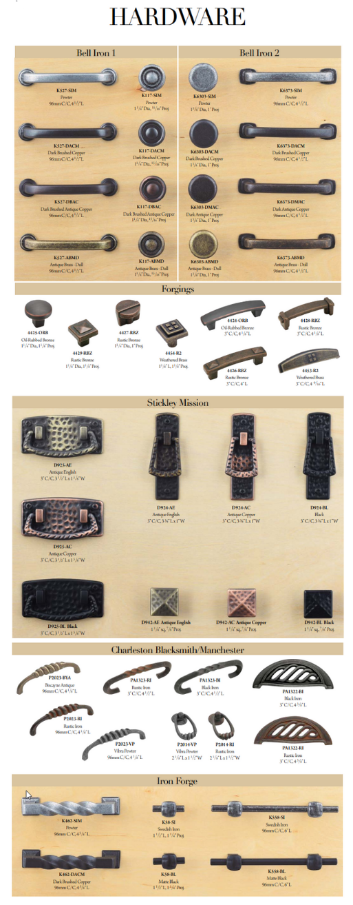 We also offer a large selection of hardware options to help customize your furniture. The right hardware can completely transform the look of your furniture to make it your own