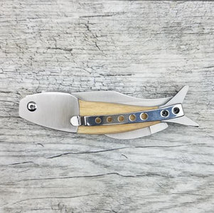 Fish Design - Wooden Pocket Knife / American Flag Etching