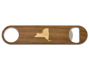 Have any of the 50 states inlaid on the front of this unique real wood bottle opener. The state outline is cut out from a piece of maple wood and inlaid into the solid walnut wood front for a great contrast in colors.