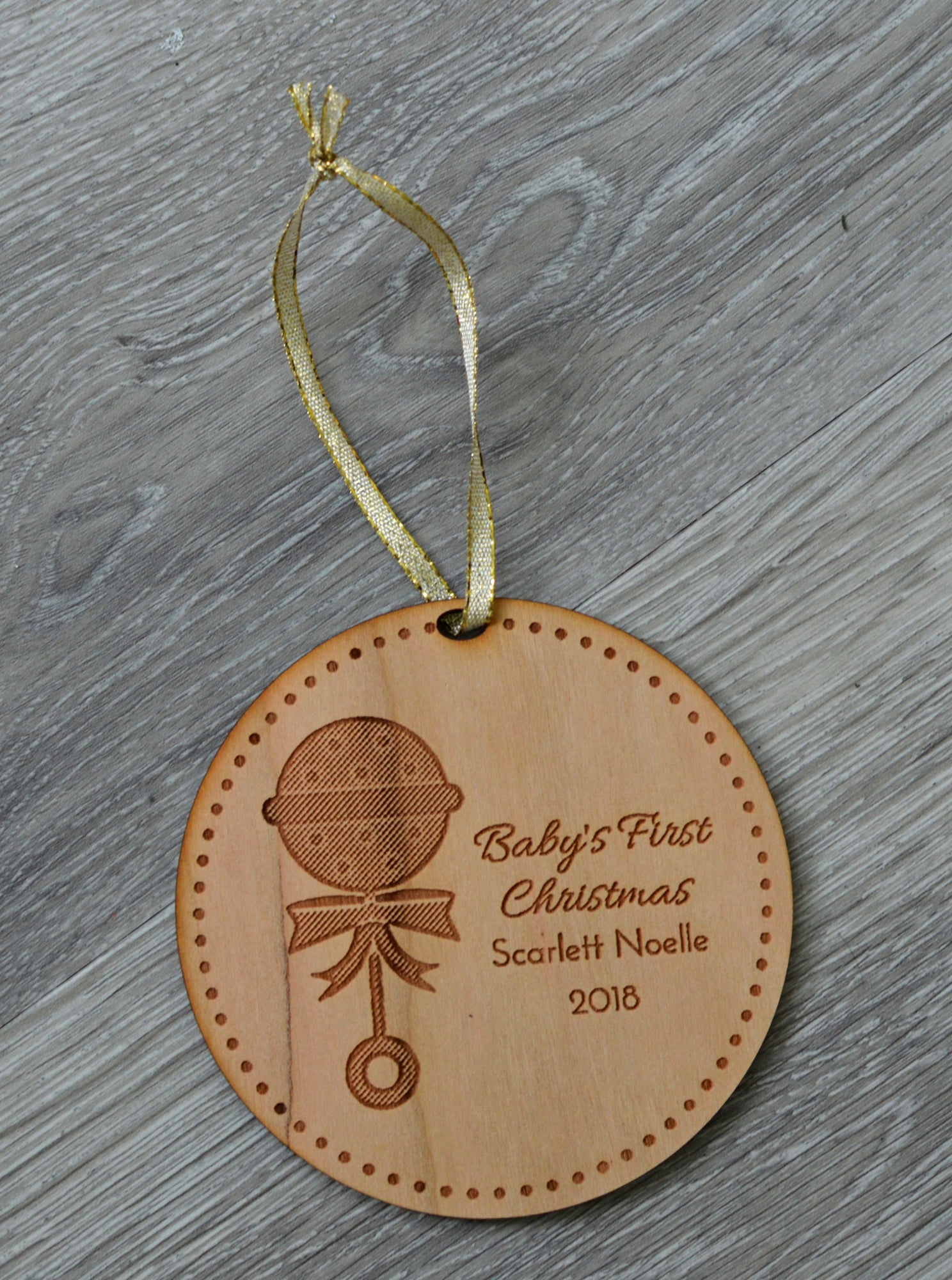 Is there a new little one in your family? Celebrate their birth with a customized wood ornament with their name on it!