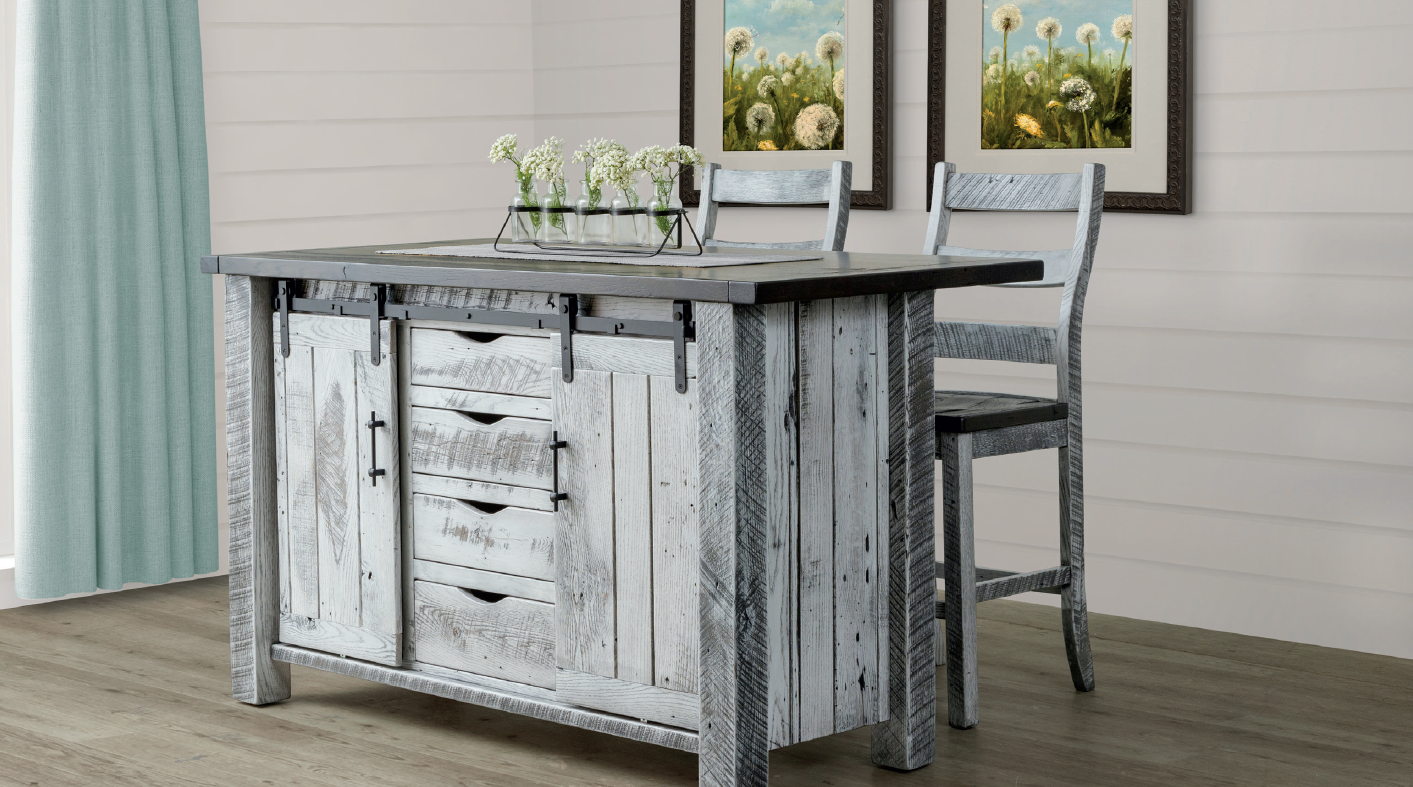Island Finish Shown In Reclaimed: Tops- Black Stain & Rest - White With Black Glaze