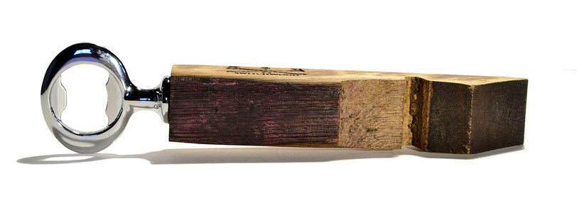 Crafted from recycled whiskey barrel wood, this unique bottle opener is a great bar accessory and conversation piece for any home.